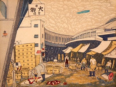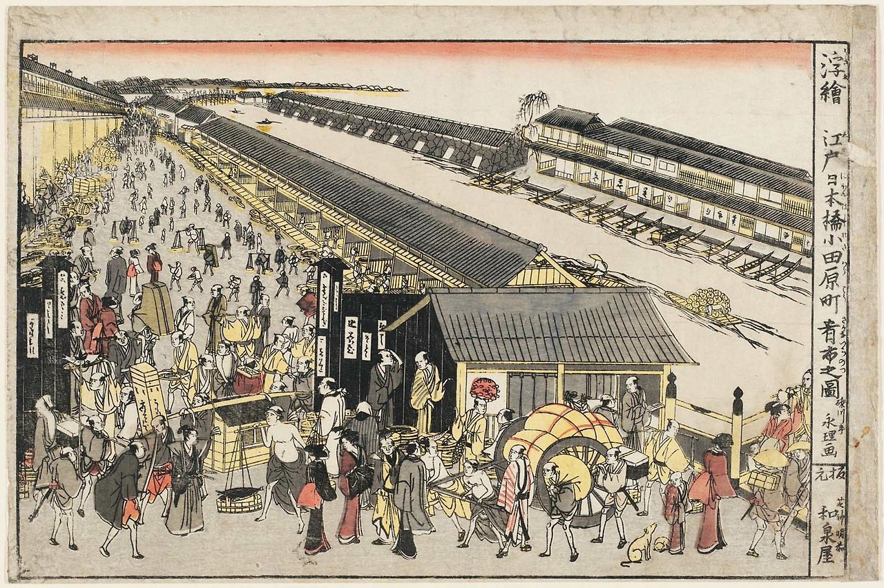 Rekisentei Eiri, Fish Market at Odawara-chô, Nihonbashi, Japanese, Edo period. 삶에 있어 타인과의 그 어떠한 형태로의 교환은 2개로 뚫린 콧구멍만큼이나 뚜렷하고, 늘 거기 있었으며 신선한 공기, 활기찬 숨이 드나드는 중요한 통로가 되었다.