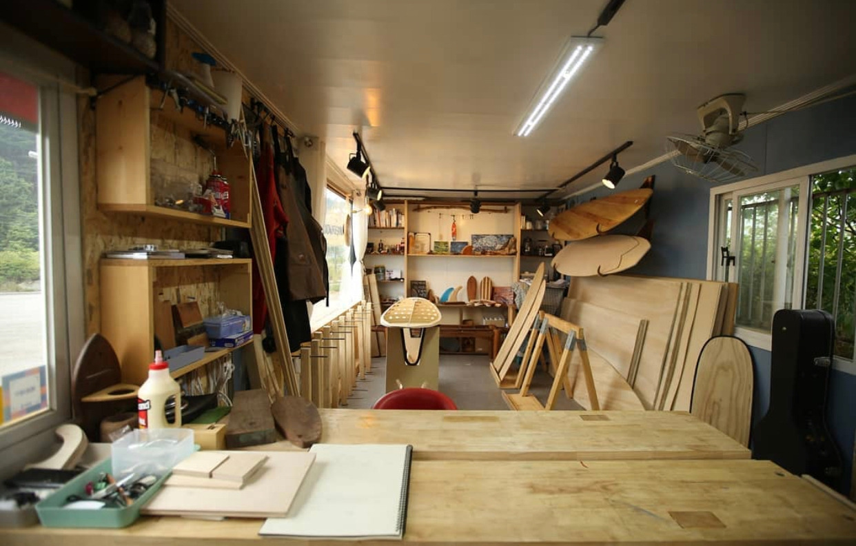 저의 다양한 업무 경험들 중 이 마케팅 에이전시에서 습득했던 '상황에 대한 유연성'이 지금 우든 서프보드 제작에 가장 큰 영향을 미친다고 볼 수 있어요. 저는 보드를 제작하는 과정에서 늘 틀에 갇혀 있지 않으려 노력하고 비교적 다양한 시도를 하려고 노력하고 있습니다.