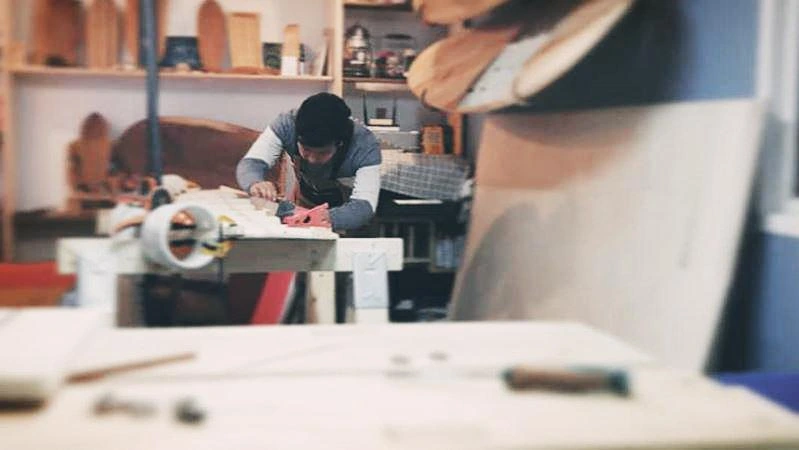 서핑을 좋아했지만 저도 나무로 만드는 서프보드가 있는지 몰랐거든요. 그러면서 자연히 좋아하던 목공과 연결이 되었고, 화학 소재로 만드는 서프보드가 아닌 좀 더 친환경적인 서프보드를 만든다는 것이 자연을 소중히 여기는 서핑 정신에도 맞닿아 있다고 생각했어요. 그래서 인터넷에서 우든 서프보드를 만드는 방법을 찾고 아는 목공방의에 도움을 받아 첫 우든 서프보드를 만들게 되었습니다.