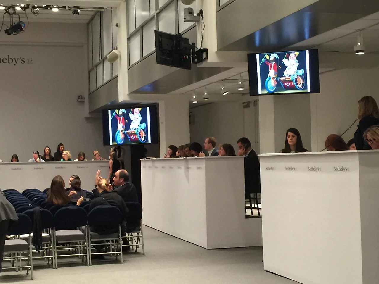 이 작품의 추정 가는 한화 176억 3,250만 원~235억 1,000만 원($15,000,000-20,000,000)으로, 이날 현대미술 저녁 경매 Contemporary Art Evening Auction에서 189억 8,902만 7,000 원(16,154,000 USD)에 낙찰되었다. 소더비사의 경매 카탈로그, 혹은 경매 결과 Auction Results에서 제공하는 작품의 세부 사항을 살펴보면, 작품의 이전 소장자, 전시 내역, 출판 내역 등에 대한 상세 내역을 포함한다. 이러한 세부사항은 작품의 미술사적 가치 평가의 척도는 물론 가격 형성에 큰 영향을 주는 것으로, 작품을 구매하기 전에 가장 꼼꼼하게 따져봐야 하는 부분이다. (또한 이러한 세부 사항은 작품의 진위여부를 결정하게 될 때 중요한 근거자료로 사용될 수 있다.)