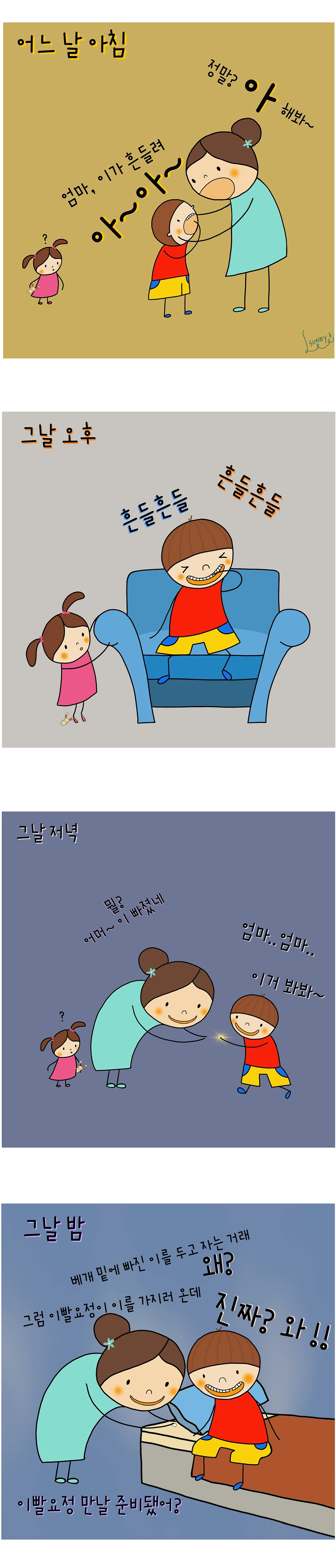 내가 아래에 그린 그림 에피소드는 우리 집에 이빨요정이 첨은 온 사건의 기록이다.