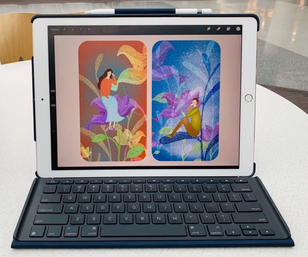 아이패드 프로가 나오고, 남편은 내 손을 잡고 베스트 바이에 가서 화면이 젤일 큰 12.9인치 화면에 용량이 제일 큰 아이패드를 골라 주었다. 애플 펜슬과 부착형 키보드도 구매하고 프로 크리에이터 어플도 깔았다. 프로 크리에이터 어플 또한 코렐 페인트보다 더 쉽게 쓸 수 있는 거 같았다. 디자인보단 손그림의 맛을 잘 살려주는 어플이었다.