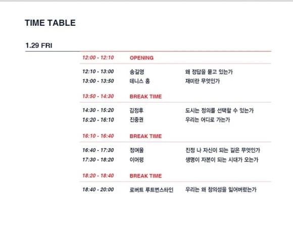 29일 날 강연에는 송길영 씨부터 해서 로버트 루트번스타인까지 나온다고 돼 있었다.