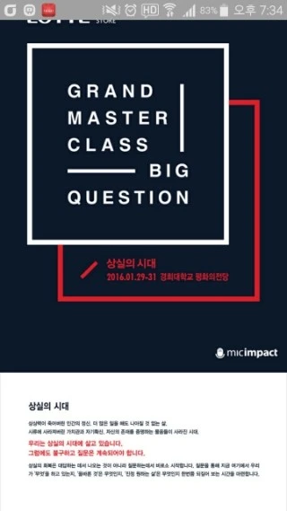 경희대학교 평화의 전당에서 하는 그랜드 마스터클래스 빅 퀘스천.
