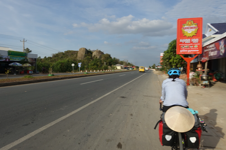 오늘 하루는 동남아 자전거여행을 시작하고 기록을 갱신하였다. 100km 넘게 달려서 캄퐁톰에 도착하였다. 캄보디아는 전반적으로 평평한 지형을 가지고 있다고 한다. 이번 동남아 자전거 여행을 계획하면서 찾아보았던 여행기 중 어떤 것에서는 캄보디아의 자전거 여행을 '너무 평평한 지형이라 지루할 정도'라고 이야기 할 정도였다. 사람마다 다르겠지만 짐까지 싣고 달려야하는 자전거 여행자들이라면 어느 정도 평평한 지형을 좋아할 수도 있겠지만 '지루할 정도라니 과연 어떤 정도이지?'라고 생각했는데, 경험해 본 캄보디아는 정말 평평하였다. 페달링을 하는 만큼 속도가 났으며 양 옆, 앞 뒤로는 끝없는 지평선이 펼쳐졌다. 간혹 산이 나타나기도 하였지만 그 정도는 다른 나라에서 그저 언덕으로 불러질 만한 낮은 산이었다. 과테말라 자전거여행을 하면서 너무 많았던 업힐에 힘들어 했던 나로써는 즐거운 일이기도 했지만 뜨거운 햇볕을 받으며 마냥 달리는 것이 조금은 심심하기도 하였다.