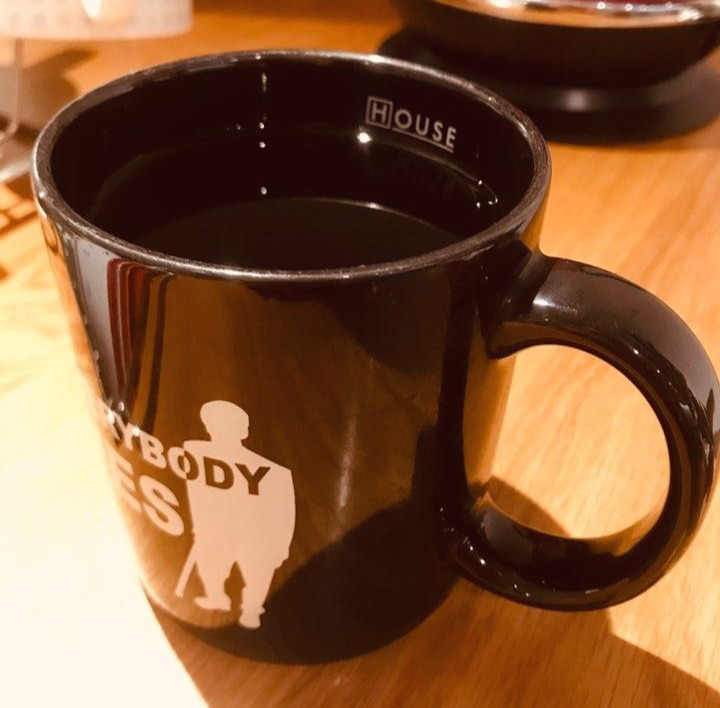 특별할 것 없는 머그컵을 기준으로 보았을 때, 거의 입구까지 채우면 300ml 정도 된다. 위의 사진에서 HOUSE라는 글자 바로 아래가 수선이다. 이 정도의 양으로 보면 된다.