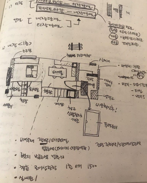 결과적으로는, 이 반듯한 집의 모양과 이왕 잘 만들어진 내부의 복층 구조를 건드리기는 아깝다는 - 그리고 건드리려면 돈도 많이 든다는 - 결론에 봉착했다. 그래서 잘 고쳐서 쓰는 걸로 결정.