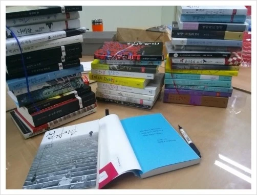 거의 대부분이 소설들인데, 인문사회서적이나 예술과학서적의 경우 상대적으로 대중성(?)이 떨어질 것 같아서 제외했다. 화집같은 것도 한두권은 섞고 싶었는데. 아무튼, 하루 날을 잡아 한 권 한 권마다 메시지를 썼다.