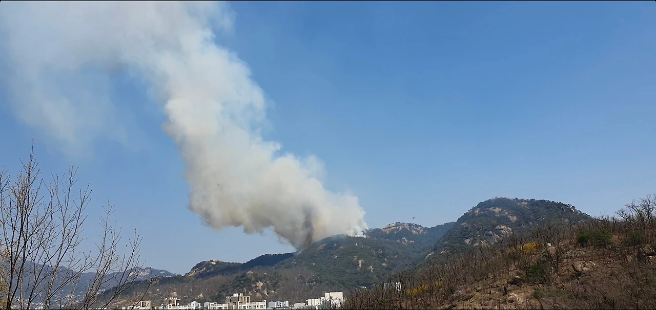 어제는 벚꽃을 보러 갔다가, 산불을 보고 온 날이었다. 모처럼 가족들과 벚꽃을 보러 서울 홍제동의 안산 자락길을 찾았는데, 건너편 인왕산에서 불이 난 것을 직관한 것이다. 어머님이 싸주신 김밥이 너무 맛있다며, 먼 산 배경으로 사진 찍겠다고 요란을 떨던 와중에 연기가 눈에 띄었다. 붉은 화염과 잿빛 연기가 하늘로 솟구치고 있었다. 헉. 산불이다. 놀란 나는 부리나케 119에 전화했다. 대기자 수가 65명이지만 끊지 말고 기다리라는 멘트가 흘러나왔다. 그 65명이 죄다 산불 신고를 하려는 건가? 일단 전화를 끊고 휴대폰을 다시 들여다봤다. 아까는 보지 못했던, 인왕산에서 불이 났다는 재난 문자가 이미 와있었다. 소방당국에서도 대응에 착수했을 터였다. 그나마 다행이었다. 그제야 한숨 돌리며 김밥을 입에 넣었다.