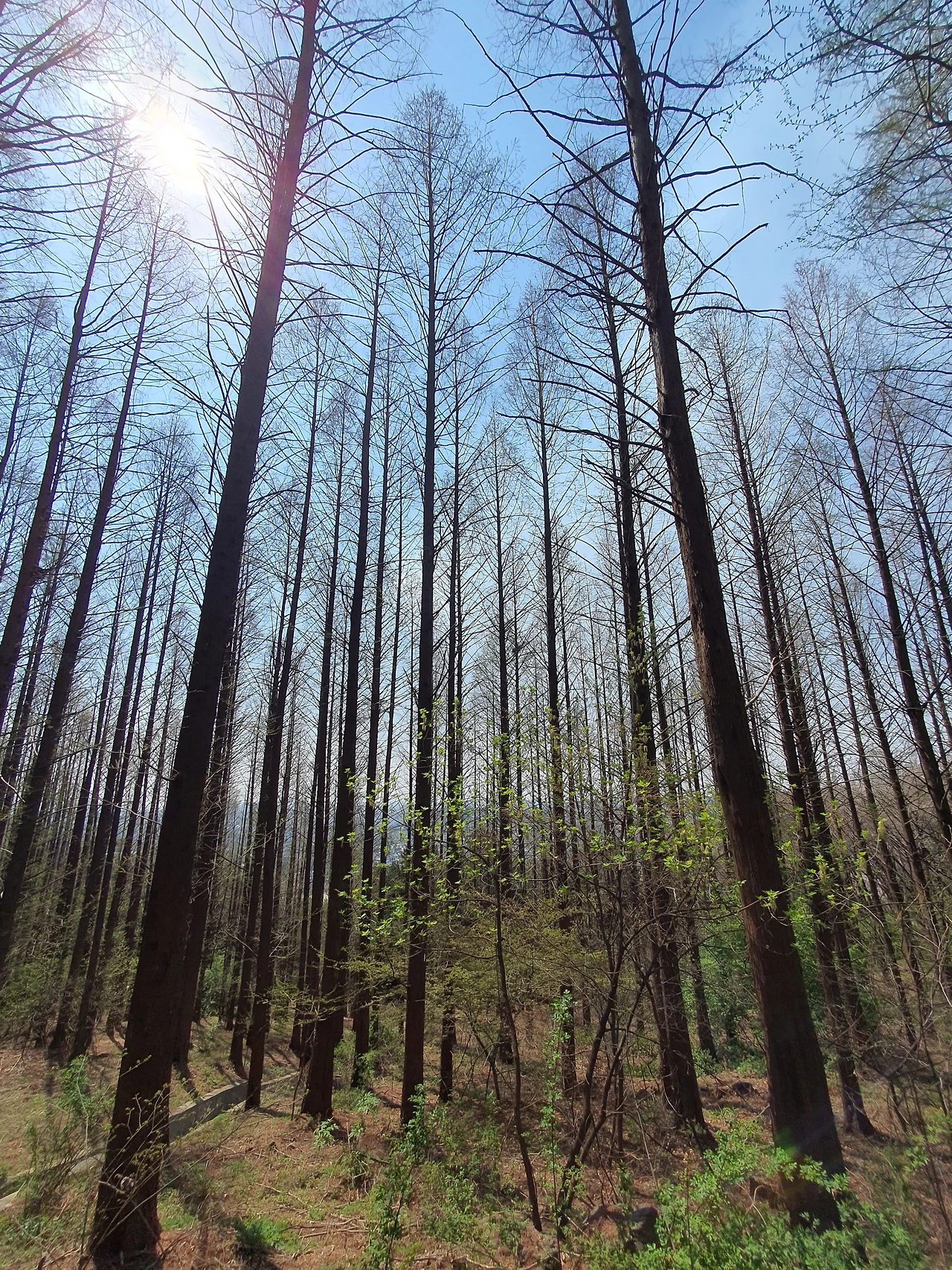 그 때였다. 어디선가 큰 소리가 들렸다. "하이고! 이제야 기껏 2대가 왔다갔다 하네. 하여간 공무원 놈들, 엄청 미적거린다니까!" 소리가 하도 커서 무의식적으로 그 쪽을 쳐다봤다. 60대로 보이는 남자 분이 어이없다는 듯 웃으며 손으로 허공을 가리키고 있었다. 소방 헬기였다. 내겐 꿀벌처럼 보였던 존재가 그 분에겐 태만한 존재로 보였던 모양이었다. 같은 걸 보고 다른 생각을 하는 건 흔하디 흔한 자유이지만, 유독 그 말은 듣기가 불편했다. 너무 쉽게 나온 말처럼 들렸던 탓이다. 이미 저만치 앞으로 간 가족들을 따라 자박자박 걸어가면서도, 마음 속으로는 그 말 한마디가 내내 거슬렸다. 하늘로 쭉 뻗은 메타 세콰이어 길을 걸을 때도, 흐드러지는 벚꽃 아래서 사진을 찍을 때도 그 말이 자꾸 마음 속에 얹혔다.