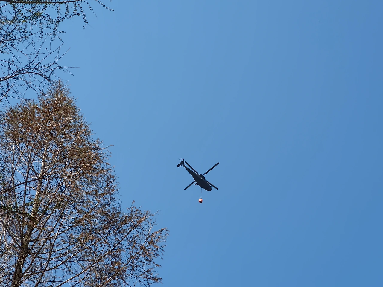 쉴 틈 없이 바쁘게 날아가던 헬기들. 이건 처음에 봤던 소방 헬기가 아니고 지원 나온 군용 헬기 같다. by 아삼삼