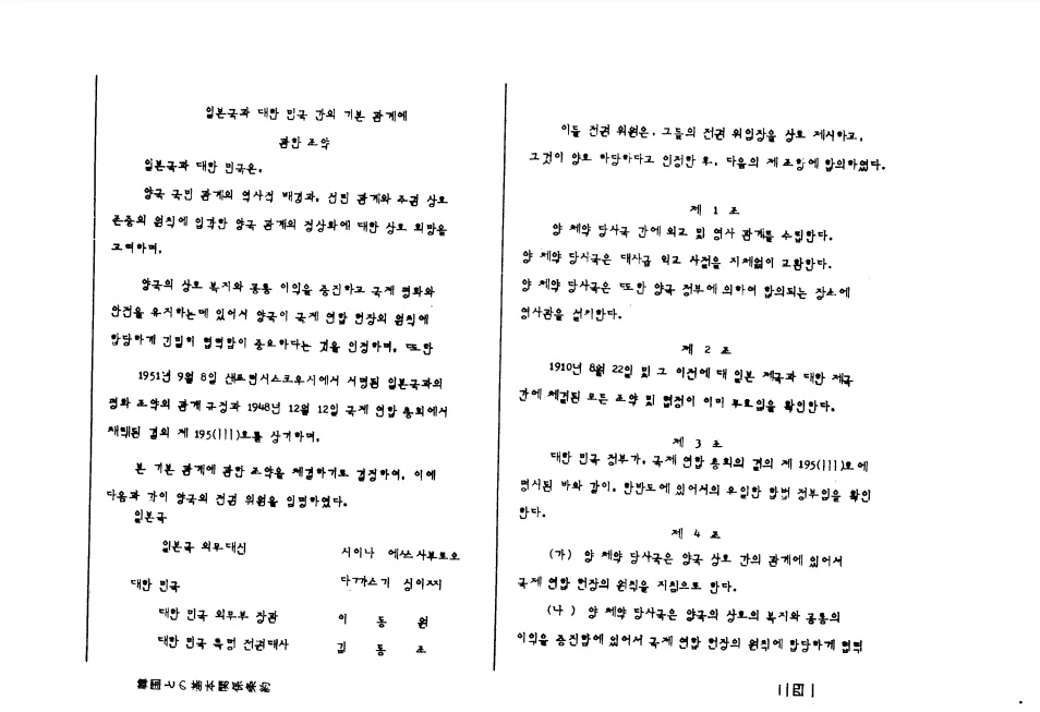 ※ 사진 참고 : 대한민국역사박물관에 전시된 한일기본조약 사본 by Motoko C. K. - 위키백과
