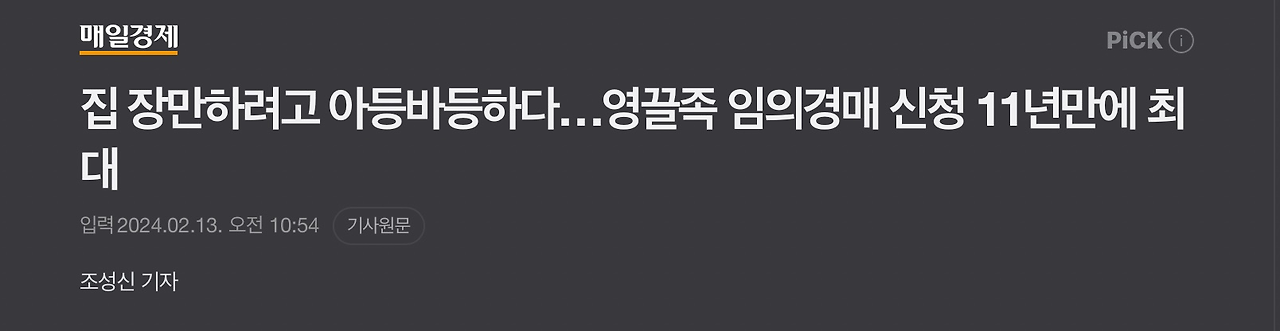 그러던 오늘 자기준(‘2.13) 기사. 작년부터 내년에 경매 물건들이 많이 나올 거란 말이 많았는데