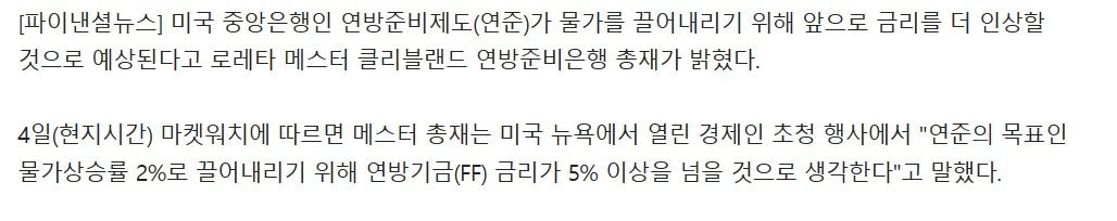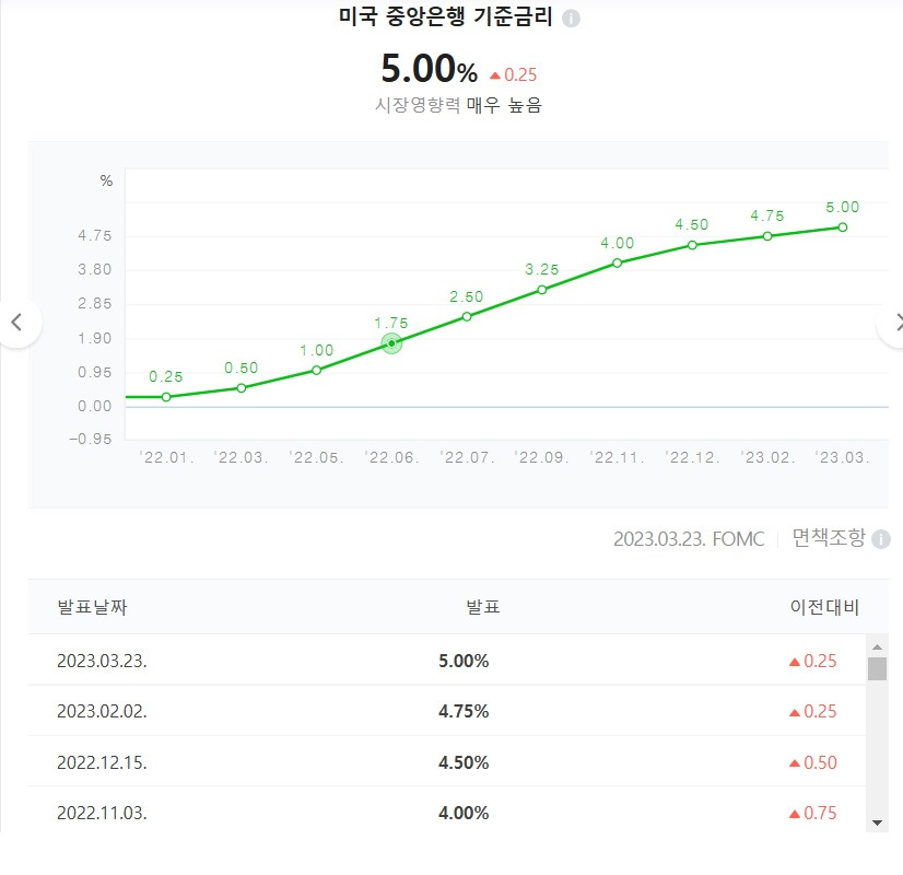 미국의 금리인상에 영향을 받을 수밖에 없는 우리나라도 향후 인상이 불가피할 것이다. 오늘 찾아본 기사에서도 연방준비은행 총재는 물가상승률 인하를 위해 금리 5% 이상을 예상하고 있다. 현재 내수심리 안정을 위해 한국 중앙은행의 기준금리는 2월 발표된 이후 3.50%로 동결을 유지하고 있으나, 2달 연속 물가상승률이 4%를 웃도는 상황에서 시장에 돈을 계속 푸는 것이 인플레이션을 막는 것에 근본적인 도움이 될까라는 의문이 든다. 지금 당장 마트를 가봐도 미친듯한 물가상승은 바로 체감할 수 있다. 그렇게 오래 산 건 아니지만, 살면서 이 정도의 물가상승은 처음 보는 것만 같다.