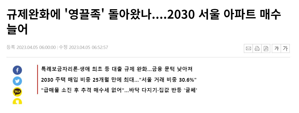 또, 부동산 시장에선 정부의 규제 완화로 대출 문턱이 낮아지면서 2030 세대의 아파트 매입 비중이 늘어났다는 분석이 나온다. 지난해 말 15억 원 초과 고가주택에 대한 주택담보대출이 허용된 데다, 올해 1월 말 '특례보금자리론'이 신설되면서 내 집 마련 실수요자들이 주택 매입에 나섰다는 것이다.