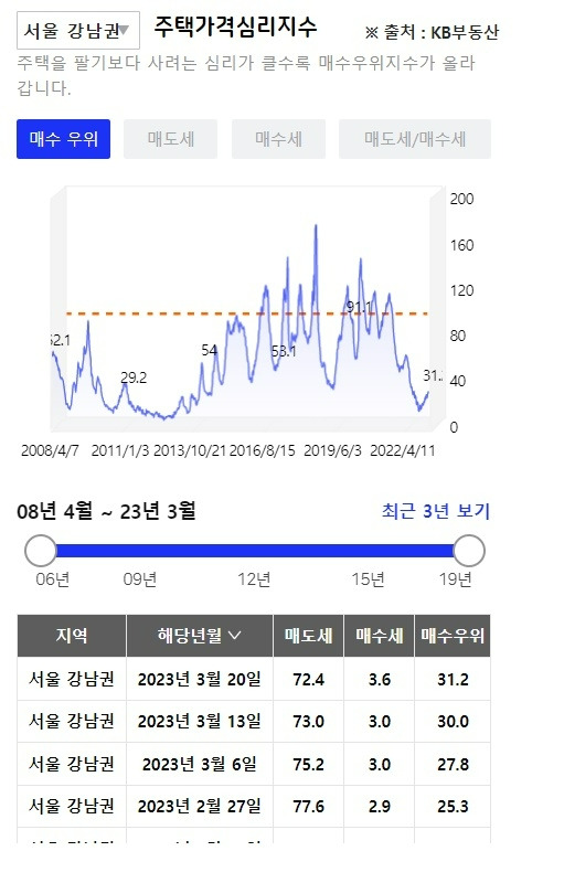 부동산 싸이클은 대충 10년 주기를 그려가는 것 같고.. 그래프를 보면 현재는 하락기초반으로 한창 더 내려갈 곳이 남아있는 것 같지만, 매수우위지수의 상승과 급매물의 감소가 바닥론에 힘을 실어주고 있다.