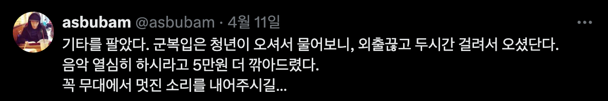이번 주에 asbubam님 이야기 애독자 라는 이야기를 들었는데, 한 번도 만나본 적 없는 분께 그런 이야기를 듣는게 너무 신기하고, 기분 좋았다.