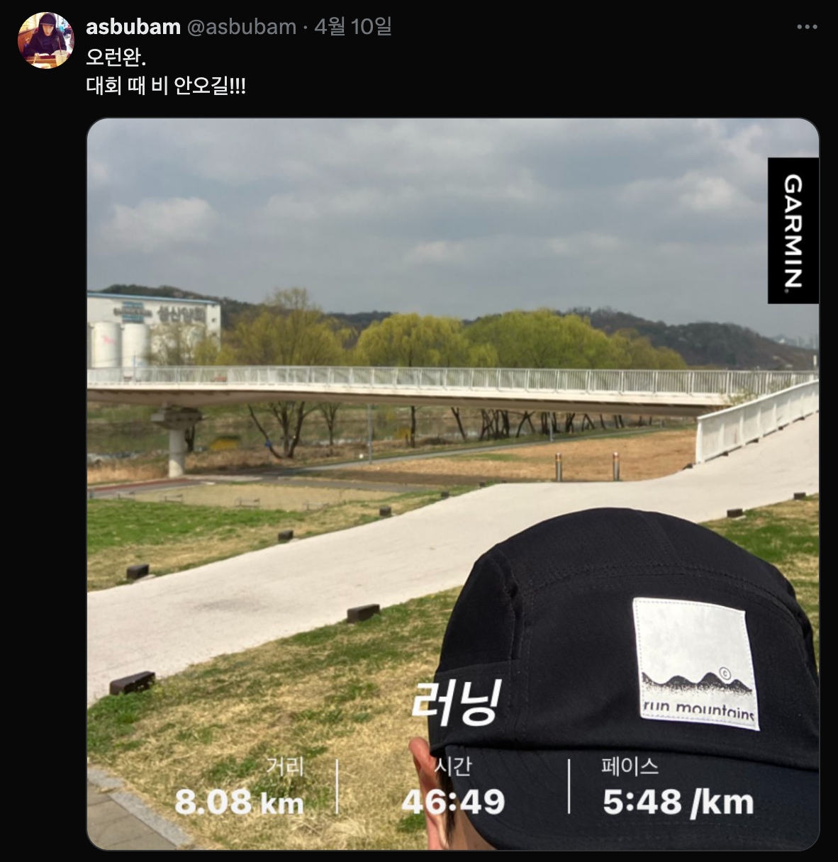 7km를 조금 지나는 시점에서 Whatever의 라이브 음원이 흘러나오는데, 나도 모르게 괜히 벅차서 눈물이 찔끔 났다. 이후로 바보처럼 으히히히 웃으면서 뛰었던 것 같다.
