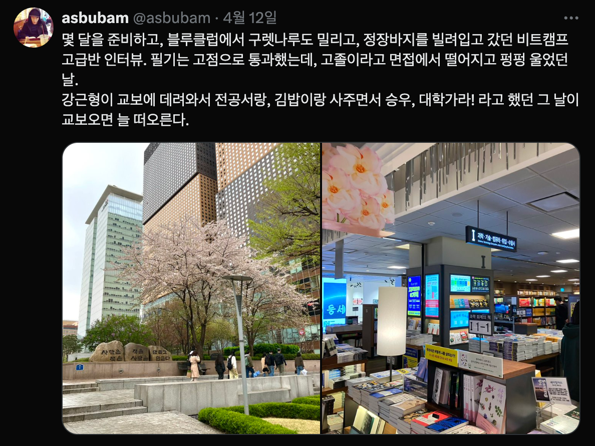 대회 참가로 광화문에 들렀을 때는, 오랜만에 교보문고 앞에서 감상에 젖기도 하고...