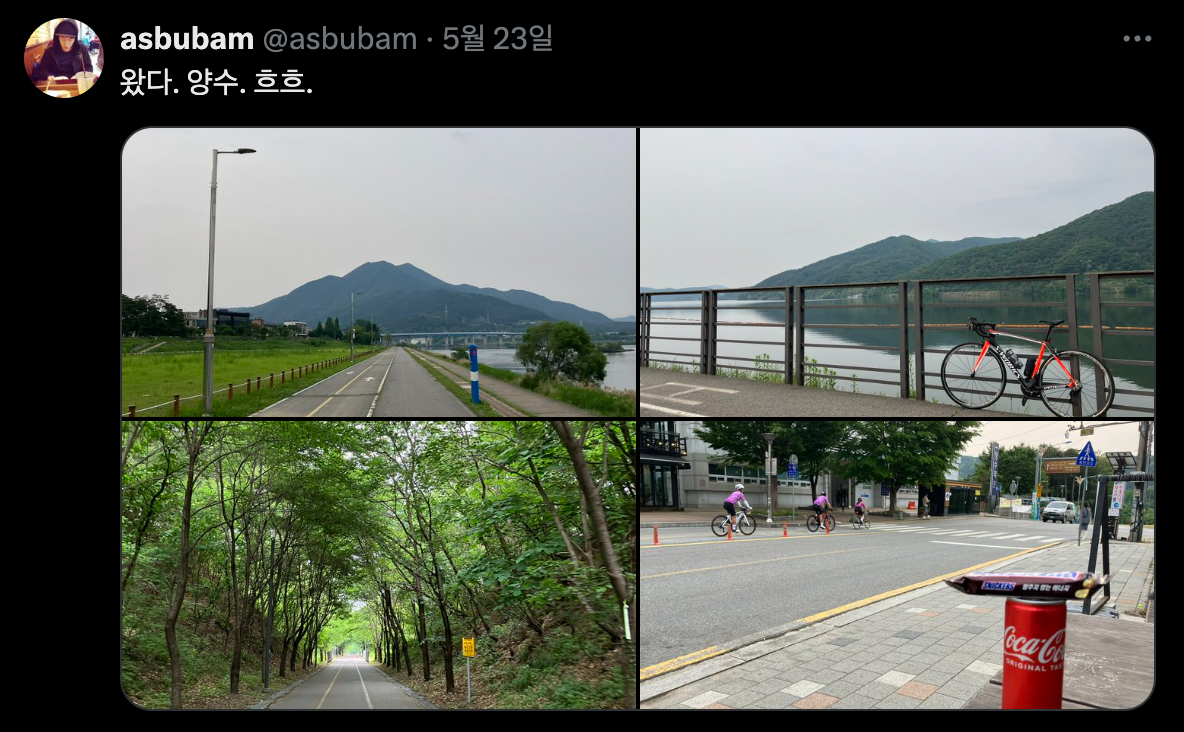 양수까지는 왕복 50km 조금 넘는 거리인데, 딱 기분 좋게 탈 수 있고