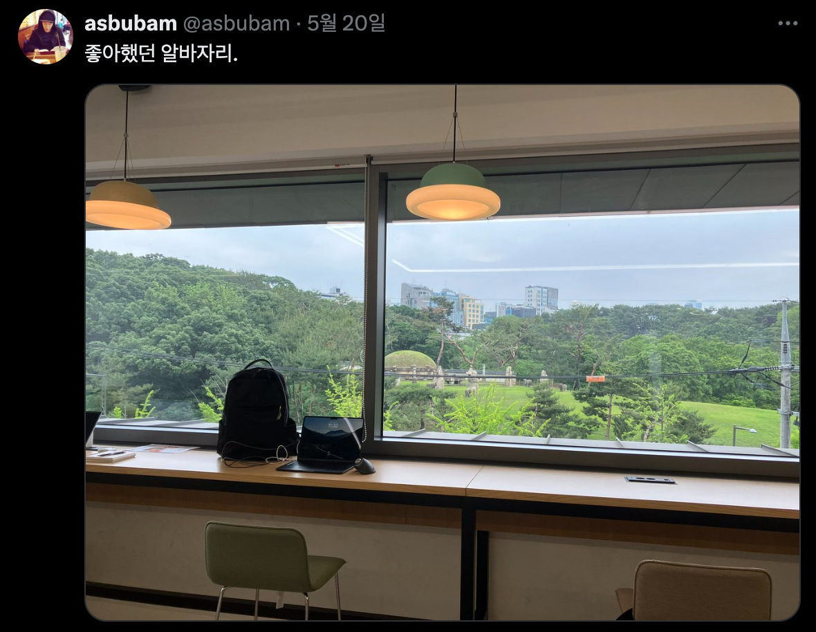 회사가 선릉 디캠프에 있어서, 방문할 때는 늘 선릉뷰에 앉아서 일했었는데,