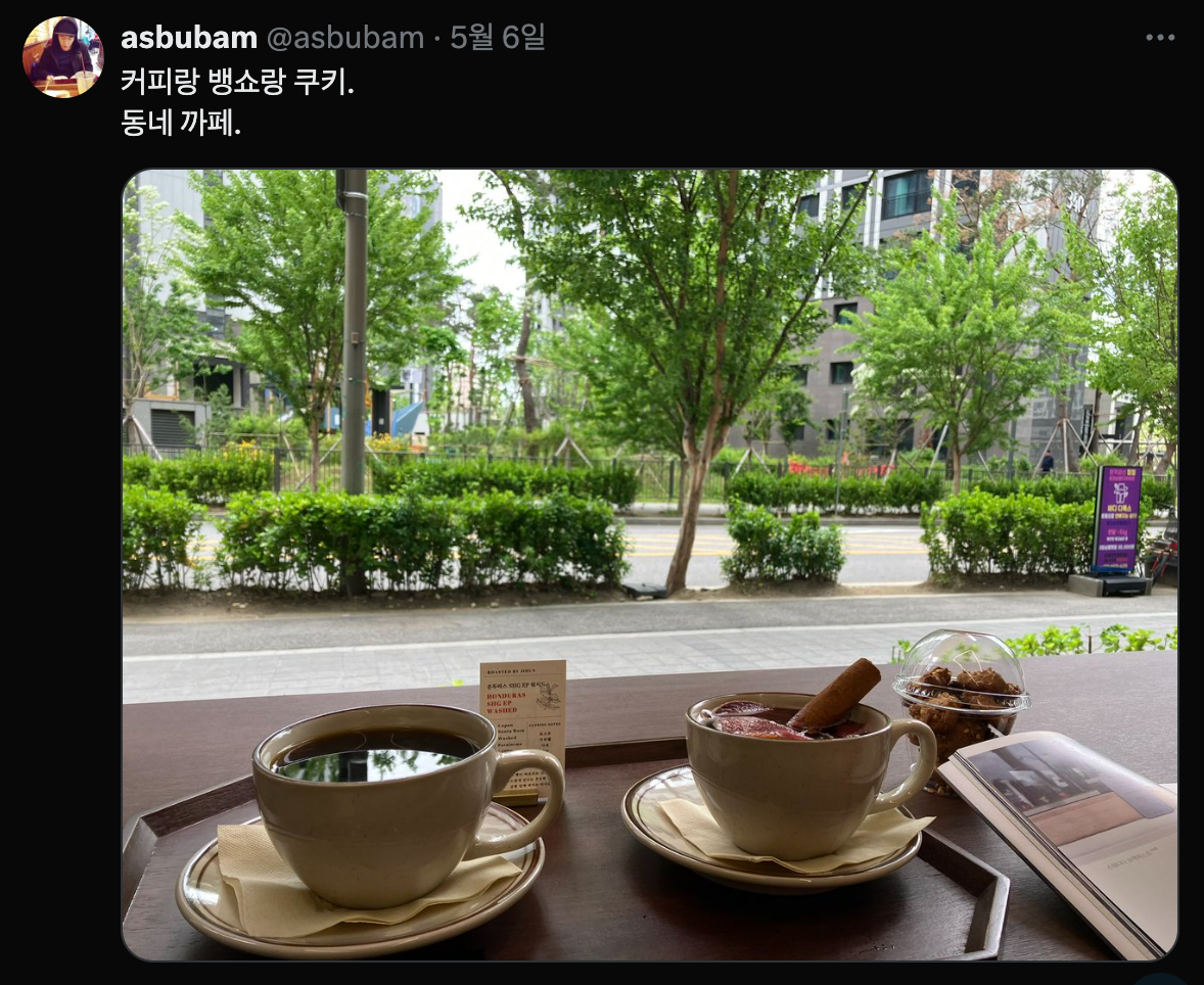 집에서 일하다 보니 답답할 때가 있어서, 지나다 몇 번 봤던 동네 카페에 들렀는데 생각보다 집중도 잘되고, 분위기도 좋고, 무엇보다 커피가 맛있고 저렴해서 몇 번이고 들렀다.