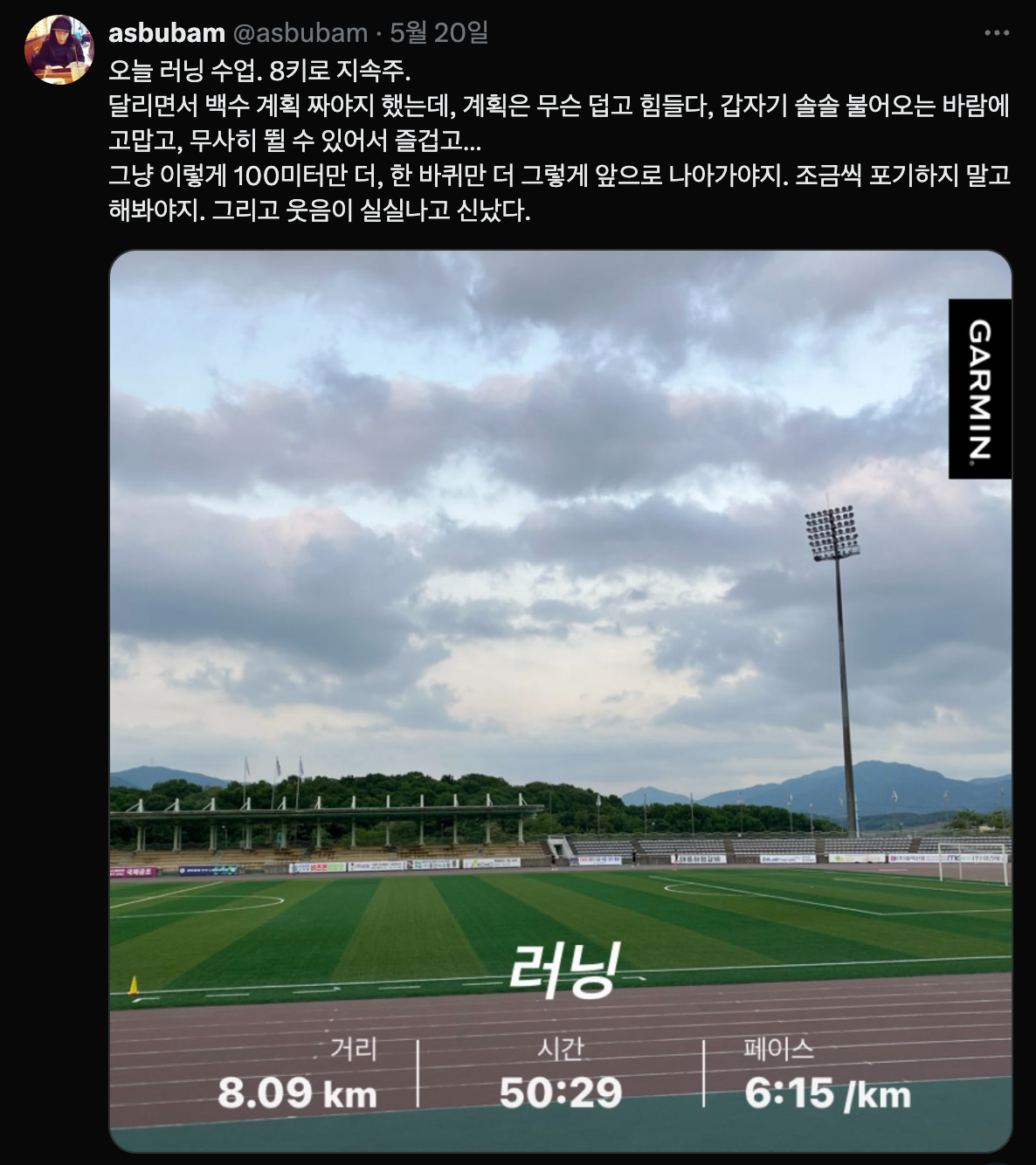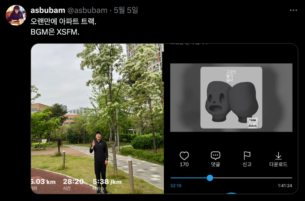 여전히 뛰는 게 너무 즐거워서, 뛰다 보면 머릿속 고민도 다 사라지고