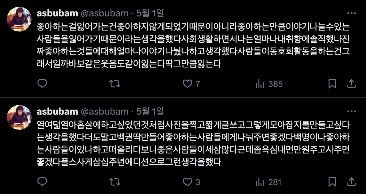이십 대의 런치박스, 카이, TTL, 페이퍼 등을 추억하며 이런 트윗을 쓰기도 했다.