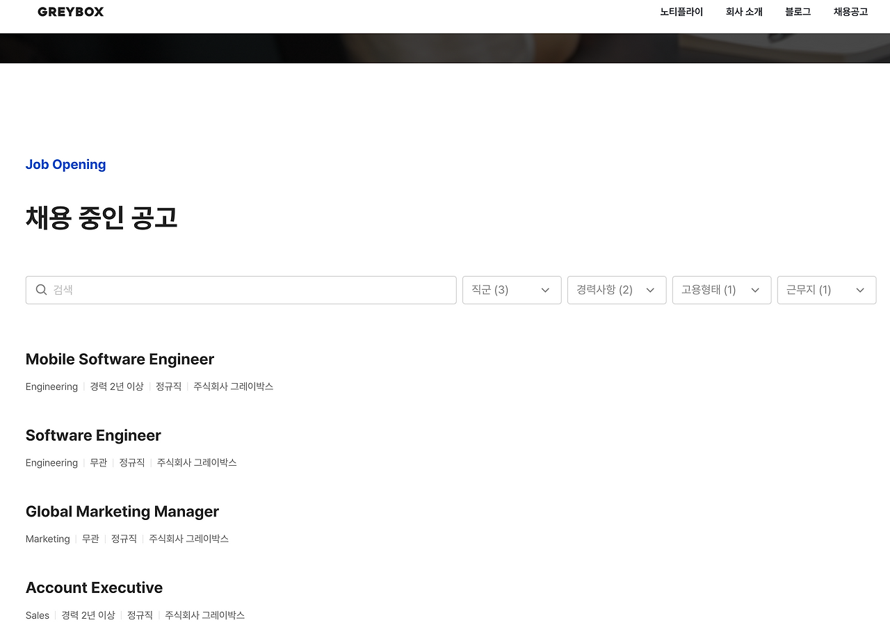 알바로 함께 했던, Greybox (Notifly)에서 다음 직군을 채용 중이니, 많관부!