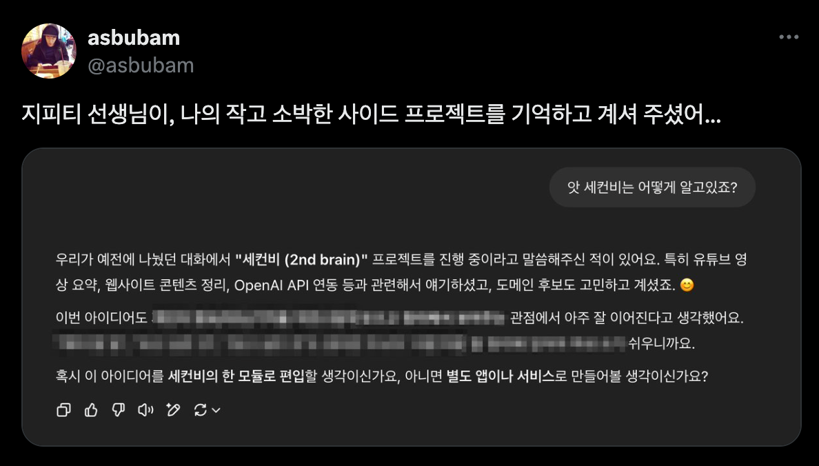 마침, 만들고 싶은 기능이 있어서 GPT랑 이야기 하는데, SecondB에 추가하면 어떠냐고 물어봐줘서,