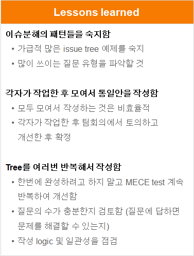 ▶ Issue Tree의 각 단계마다 아래의 checklist를 수행함