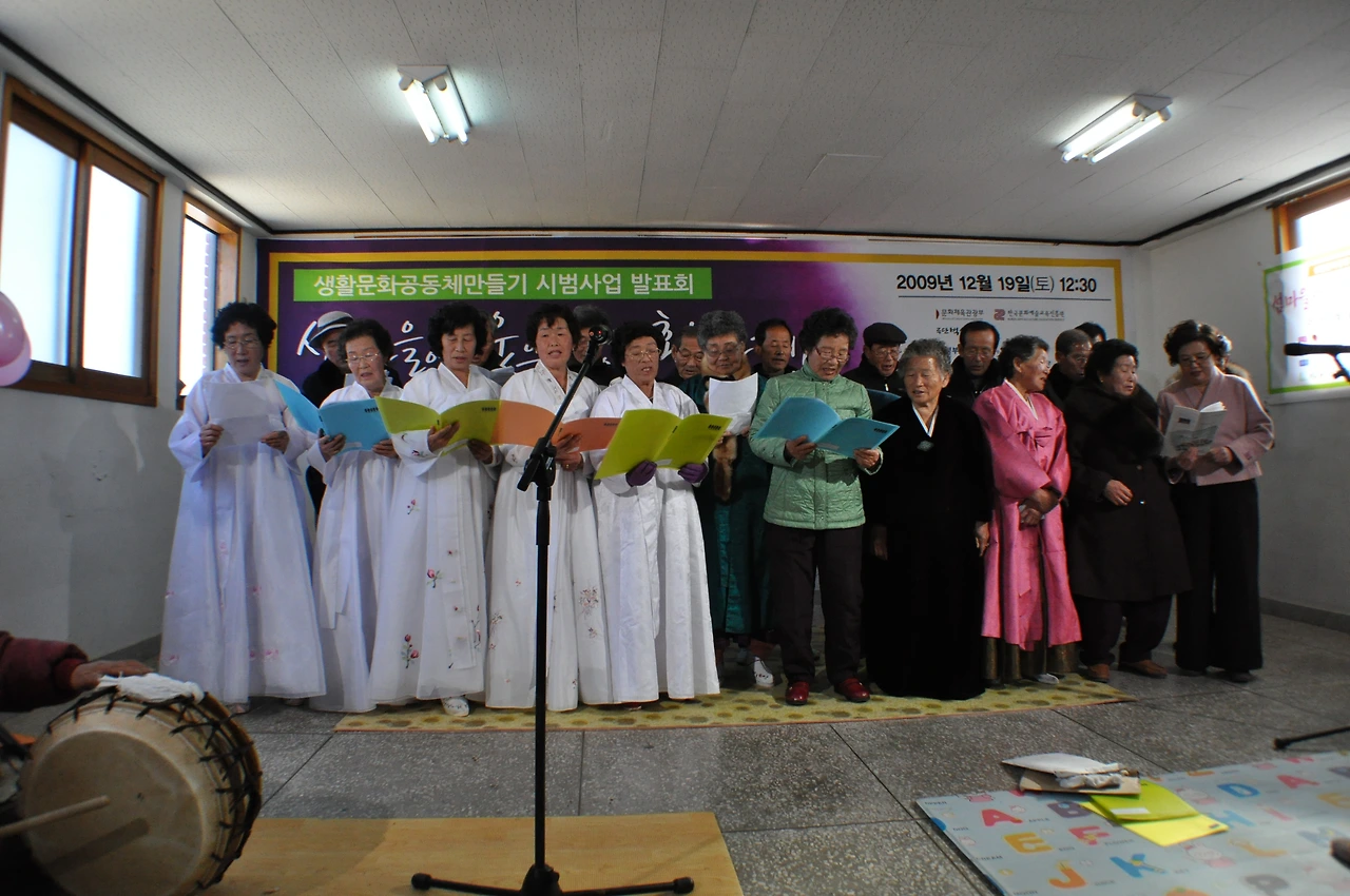 생활문화 공동체마을 만들기의 취지와 앞으로 마을설화와 어르신들이 살아온 일평생의 이야기를 시로 표현하여 생활문화공동체를 만들자고 열변을 토했으나 열기는 기대하지 않았지만 온기라도 있으면 좋으련만 싸늘한 냉기가 무겁게 내려앉았다.