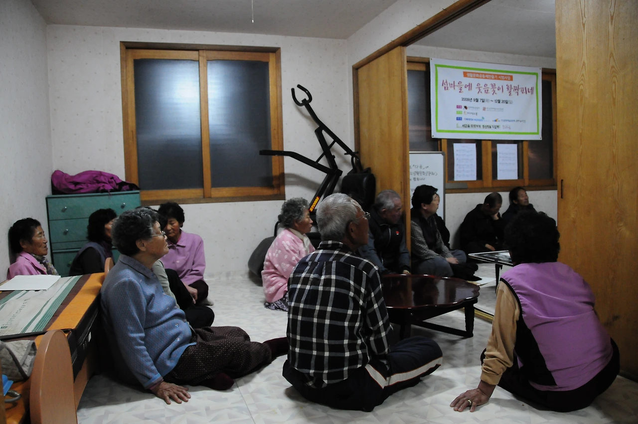 섬마을에 웃음꽃이 활짝피네 설명을 듣는 어르신들