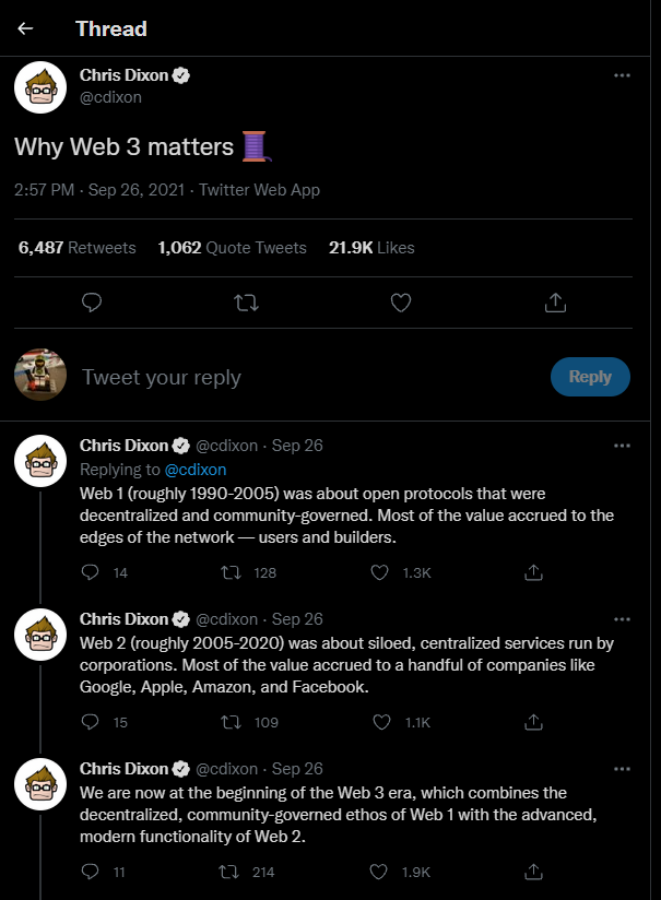 얼마 전 블록체인 산업에 종사하시는 분과 만날 기회가 있어 NFT, Web 3.0 관련해서 리서치를 했다. 이 글은 이전 NFT 관련 글에 이은 두 번째 글이다. 이번 글에서는 Web 3.0와 이를 둘러싼 논쟁들을 정리해봤다.