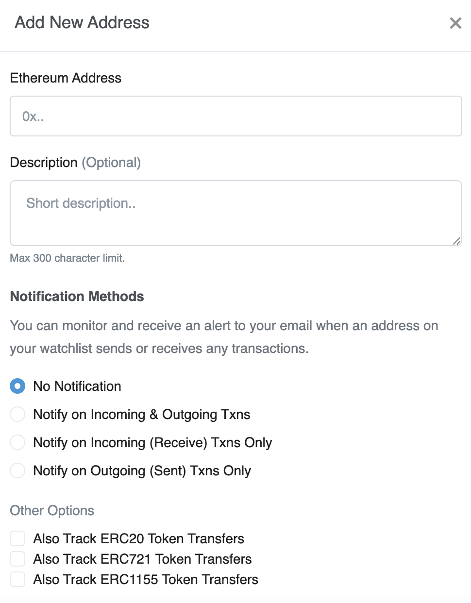 또한 이더스캔 회원 가입을 하면 "Watch List"라는 기능을 사용할 수 있다. 이는 특정 지갑 주소를 등록해서 쉽게 해당 지갑에 접근을 할 수 있는 기능인데, 쉽게 말하면 지갑 즐겨찾기라고 생각하면 된다. 설정을 통해 지갑에 활동 내역이 발생할 경우 이메일로 알람을 받을 수도 있다.