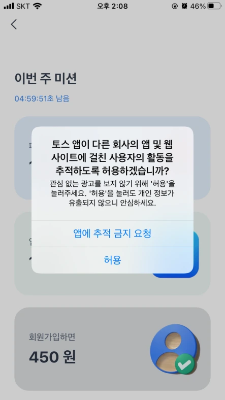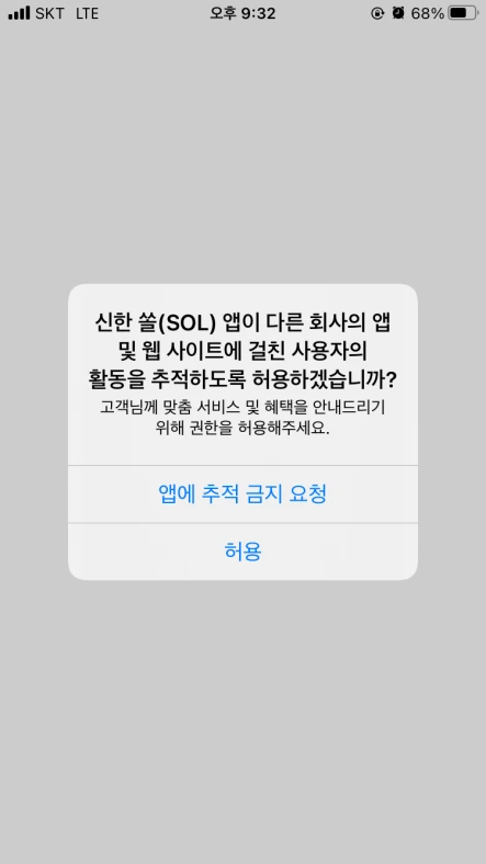 앱 추적 투명성 팝업은 아래 3가지 요소로 구성되어 있다.