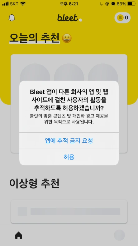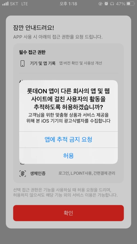 더 나은 환경의 광고 제공을 할 수 있도록 IDFA 수집에 동의하시겠습니까?