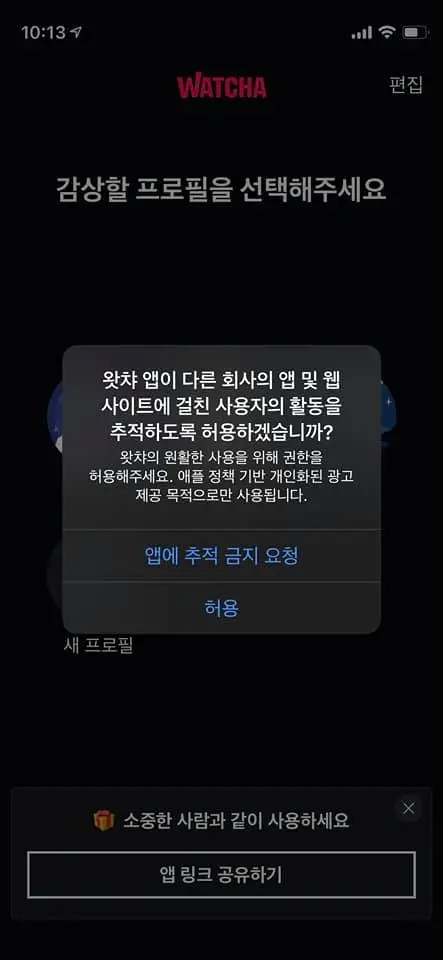 왓챠의 원활한 사용을 위해 권한을 허용해주세요. 애플 정책 기반 개인화된 광고 제공 목적으로만 사용됩니다.