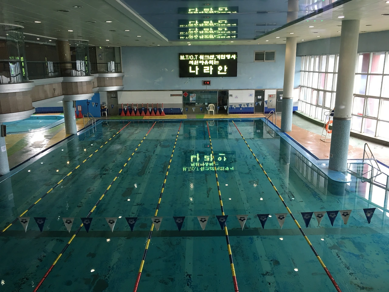 간단한 10분 체조가 시작되었고, 선생님이 말한 이쪽을 보고 당황했다. 유아풀이었다. 수심이 무릎도 안 되는 유아풀에 모이라고 하신 거다. 내가 말하는 걸 못 들으신 걸까? 그래도 수영장에서 자유형도 하고, 배영도 하는데. 유아풀에서 수영이라니. 황당했다. 여기서 뭘 한다는 거지. 분명 초등학교 때도 1m 깊이에서 수업을 했고, 1.25m 까지도 갔었다. 깨금발을 해가면서도 물에 떠있었고, 바다에서도 수영을 해왔던 터라 이런 푸대접에 살짝 당황스러웠다. 속에서는 의심의 거품이 부글부글 일어났지만, 티를 안 내려 애썼다. 체조를 마친 선생님이 다가오시더니 다섯 명 남짓되는 반 분들을 둘러보면서 급 자기소개를 시키기 시작했다. 통성명과 나이까지 덧붙이는 오글거림에 박차고 나가고 싶었지만, 3개월 강습비에 발이 묶여 피할 수도 없는 노릇이었다. (3개월부터 들어간 DC에 코가 끼었다.) 부끄러운 소개시간이 끝나고, 자그마한 유아풀에 몸을 담그고 팔로만 딛고 물에 뜨는 연습을 했다. 계속 이상하다는 생각만 들었다. 왜 여기 있는 거지 싶은. 물에 뜨는 연습을 한 후, 힘차게 발차기를 했다. 유아풀물을 다 퍼낼 기세로 위아래로 마구마구 차라는 선생님의 말을 잘 따르는 5명의 학생들은 새하얀 물보라를 일으키며 유아풀분수를 만들어냈다. 30분 남짓 시키니까 한다의 훈련을 반복한 후, 선생님은 기본 레인으로 강습생들을 인솔했다. 그렇지 그래야지 뒤따라 들어가서는 초등학교 당시 첫 강습을 했던 숨참고 물에 뜨는 연습을 했다. 숨을 한껏 들이마시고, 몸을 동그랗게 다리를 감싸며 말아 올리면 물속에서 몸은 부표처럼 동동 표면에 띄어 오른다. 얼마나 참을 수 있는지 내기 아닌 내기를 하고, 코에서 날숨이 뽀글뽀글 올라가는 걸 지켜봤다. 물속의 시간은 슬로 모션처럼 느리게 지나간다 마치 다른 스피드를 걸어놓은 장면들처럼. 잠시 후, 숨이 턱밑까지 차올랐을 때 땅에 발을 딛고 일어났다. 자 여러분 잘하셨어요. 여기까지 하시면 이제 수영을 시작하실 수 있습니다.
