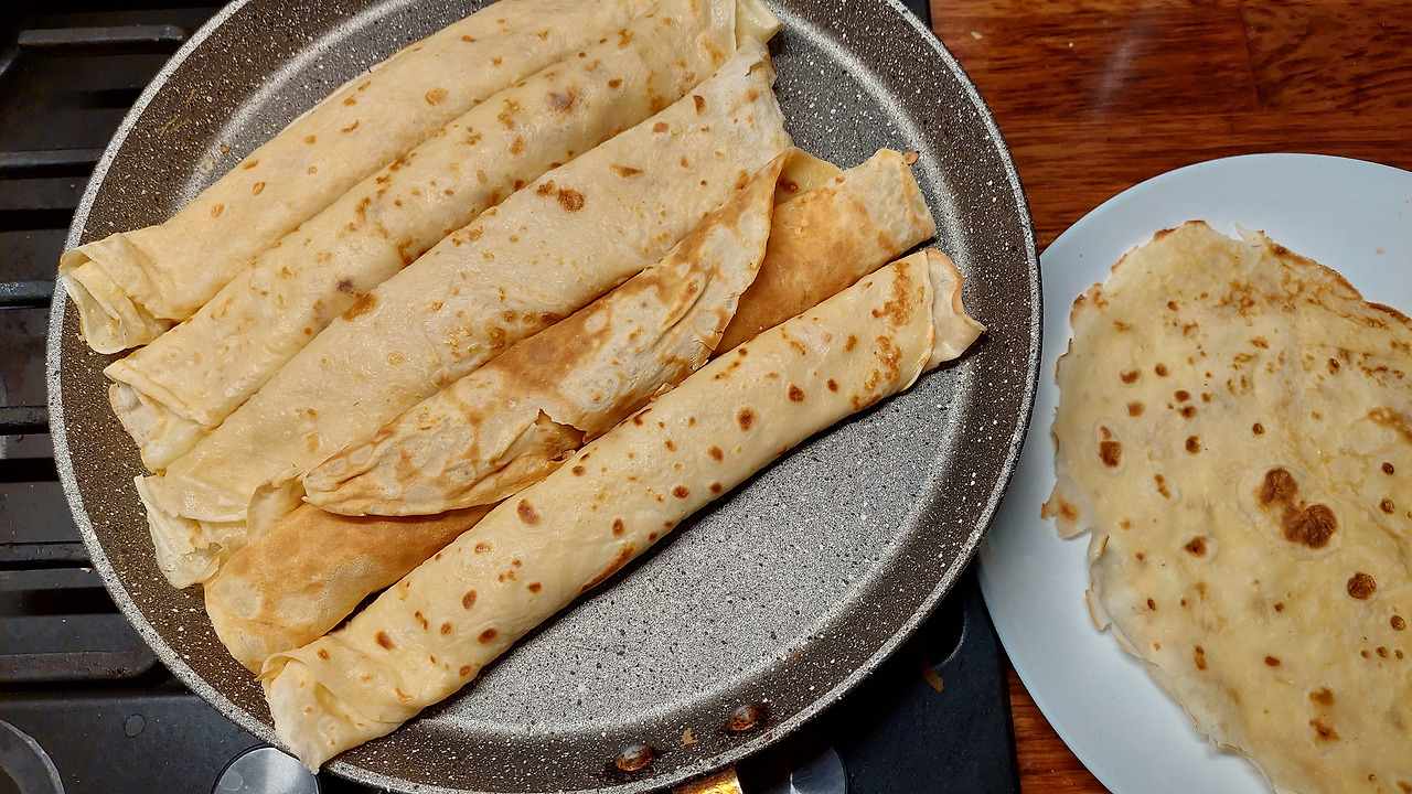 누구에게든 이민 생활은 타협 일지라고 해도 과언이 아닐 거다. 나 역시도 적당한 선에서 타협하고 스스로를 세뇌하는 거의 전체주의적 발상으로정신 승리하며 식성과 입맛을 바꿔왔다. 크레페 반죽에 강낭콩 앙금과 크림을 넣으니 붕어 싸만코에 필적한 맛이 난다며 혼자 감탄한다.