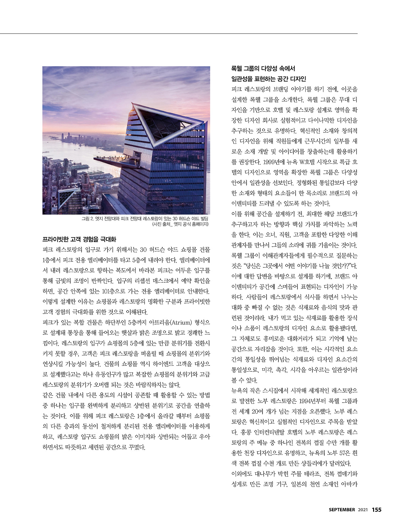 2021년 9월호 '호텔 앤 레스토랑' 매거진 기고문