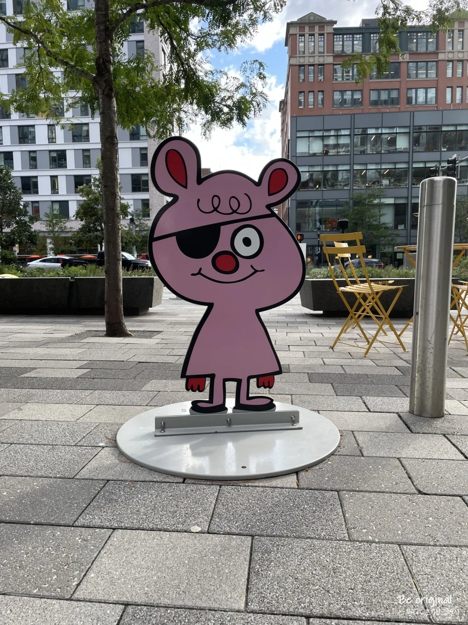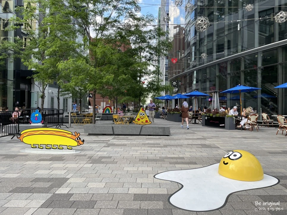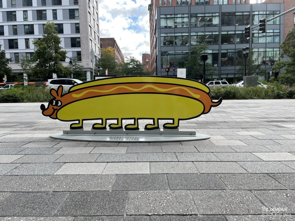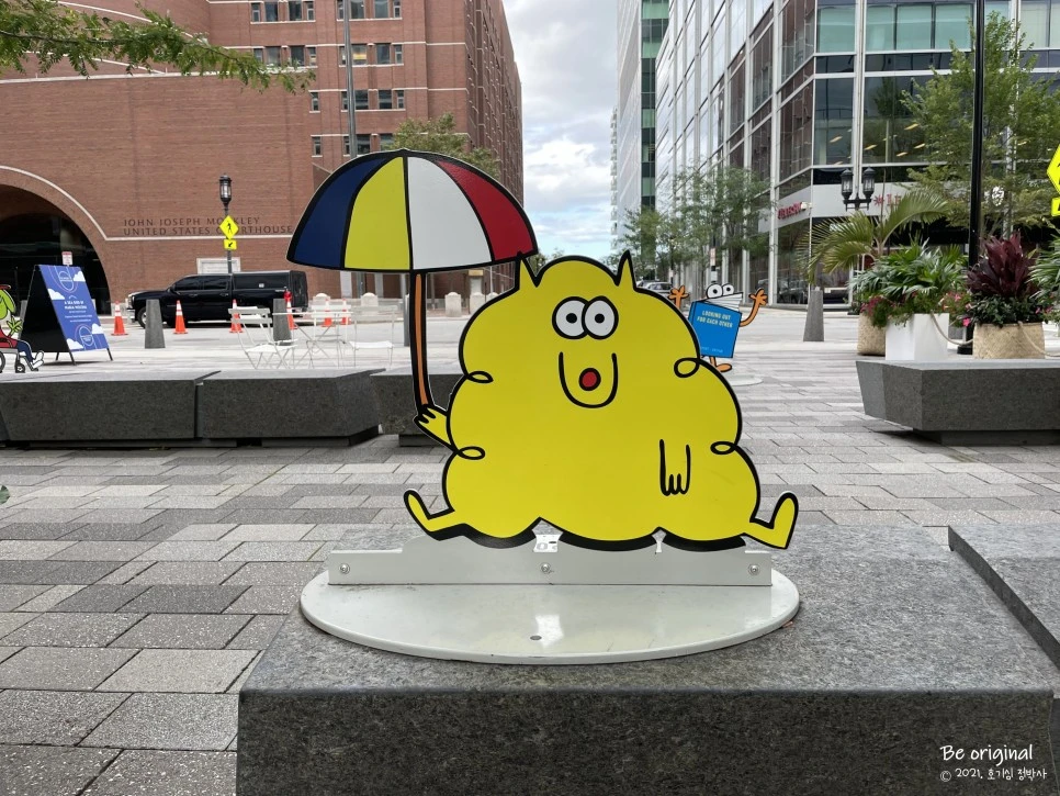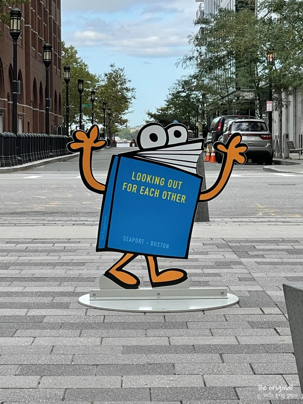 보스턴 씨포트에는 보스턴 티파티 박물관, 어린이 박물관, 유명한 후드 아이스크림 가게(장소들 중 유일하게 색칠되어 있는 건물)가 있는데, 이 지도에 다 찰떡같이 표현되어 있다. 그리고 이 광장에 설치된 친구들도 이 작품 속 씨포트 곳곳을 돌아다니고 있다.
