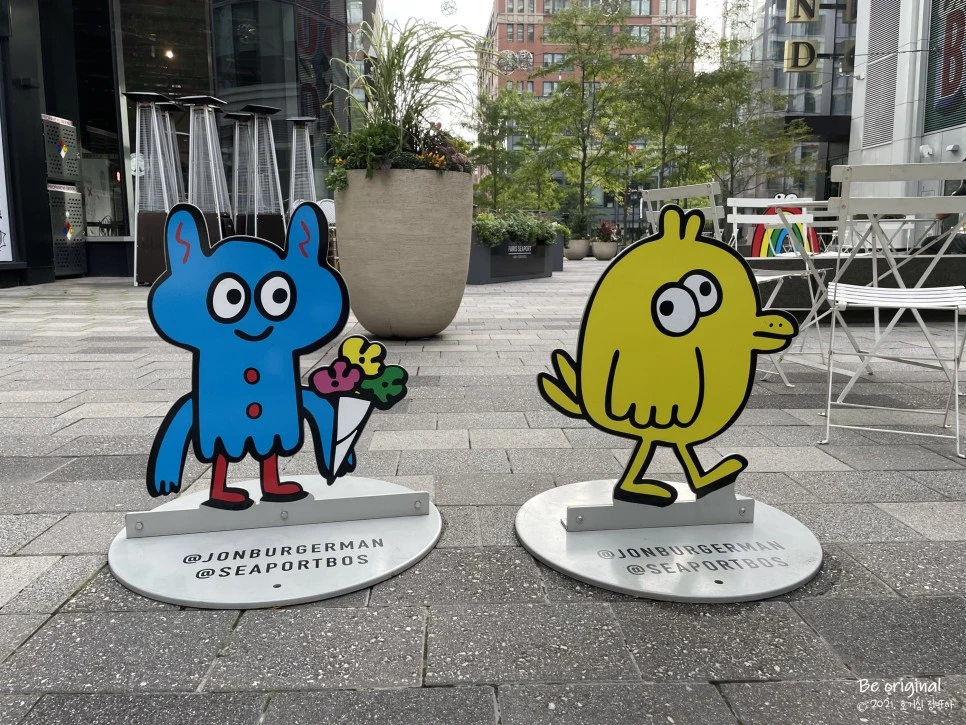 COVID-19 팬데믹으로 많은 회사들이 재택근무를 실시하며, 이곳의 유동인구가 현저히 줄었다. 그로 인해 삭막함까지 더해지는 결과로 이어졌다. 보스턴 씨포트의 마케팅 담당자는 심란하고 우울한 도시민들의 기분 전환과 도시의 활력을 위해 밝고 익살스러운 캐릭터들을 섭외했다. 보기만 해도 얼굴에 미소가 지어지는 이 캐릭터들은 영국의 작가 '존 버거맨(Jon Burgerman)'의 작품이다.