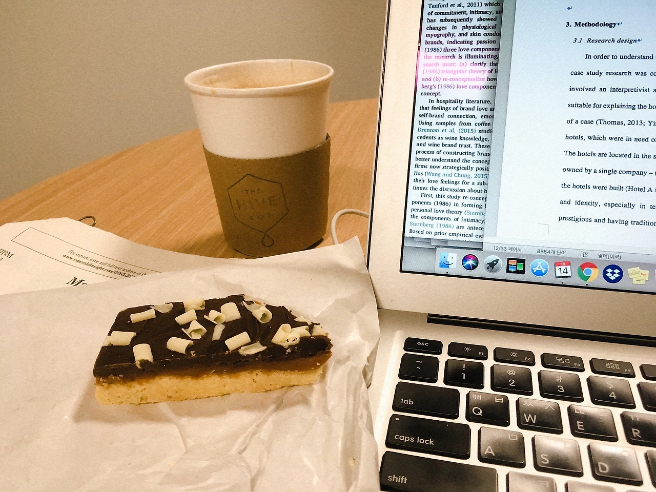 박사 논문의 결과물인 호텔 사례로 도출한 브랜딩 프레임워크를 주제로 학술 논문을 작성하기로 했다. 먼저 논문의 방향성과 구조, 타깃 저널에 대해 스카이프로 미팅을 하고, 내가 1차 작성해서 지도교수에게 보내면 교수님이 리뷰하고 수정해서 나에게 다시 보내는 방식으로 진행했다. 문제는 이렇게 논문이 오가는데 시간이 꽤 많이 걸린다는 것. 교수님도 나도 다른 일들을 하면서 자투리 시간을 내서 하는 거라 진도가 영 안 나갔다. 그러다 보니 어느새 2018년 12월 말... 이렇게 해선 안 되겠다 싶었다.