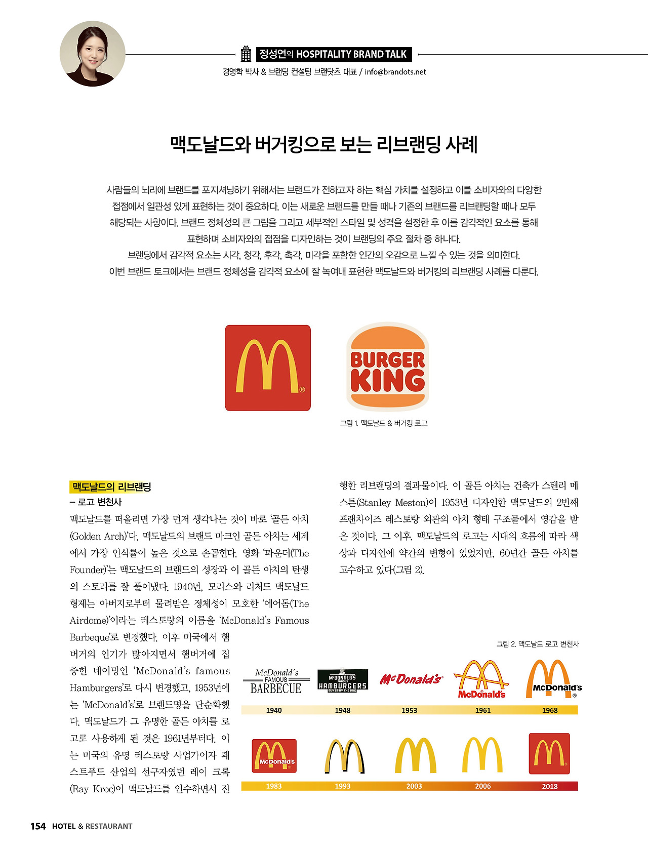 사람들의 뇌리에 브랜드를 포지셔닝하기 위해서는 브랜드가 전하고자 하는 핵심 가치를 설정하고 이를 소비자와의 다양한 접점에서 일관성 있게 표현하는 것이 중요하다. 이는 새로운 브랜드를 만들 때나 기존의 브랜드를 리브랜딩 할 때나 모두 해당되는 사항이다. 브랜드 정체성의 큰 그림을 그리고 세부적인 스타일 및 성격을 설정한 후 이를 감각적인 요소를 통해 표현하며 소비자와의 접점을 디자인하는 것이 브랜딩의 주요 절차 중 하나다. 브랜딩에서 감각적 요소는 시각, 청각, 후각, 촉각, 미각을 포함한 인간의 오감으로 느낄 수 있는 것을 의미한다. 이번 브랜드 토크에서는 브랜드 정체성을 감각적 요소에 잘 녹여내 표현한 맥도날드와 버거킹의 리브랜딩 사례를 다룬다.