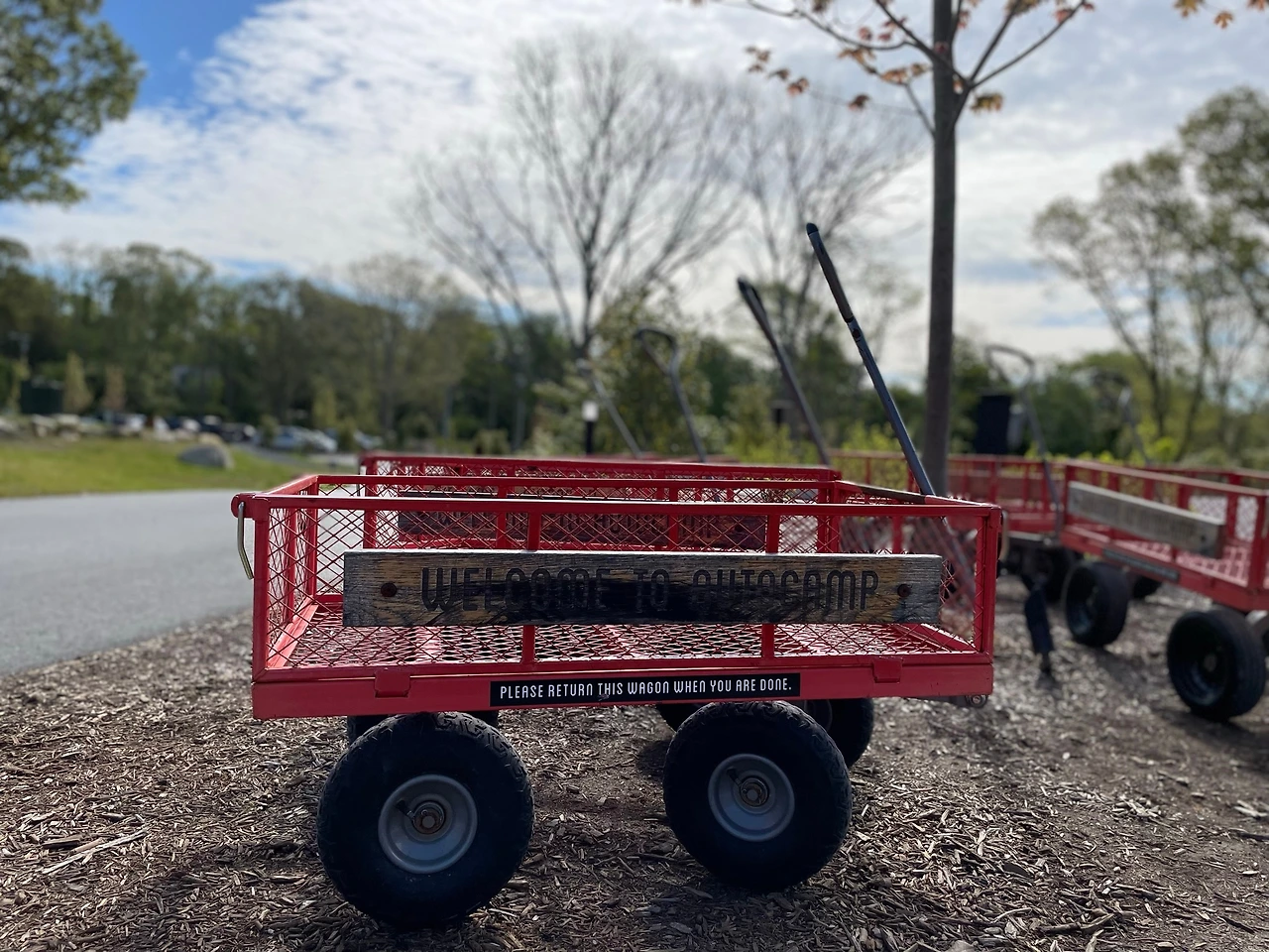 이런 불편을 방지하기 위해 클럽 하우스 앞에는 캐리어 등의 각종 짐을 담을 수 있는 오토캠프 전용 귀여운 카트가 마련돼 있다(그림 1). 대형 캐리어 2개가 쏙 들어가는 크기에 불편 없이 손쉽게 끌 수 있어 만족도가 상승했다.