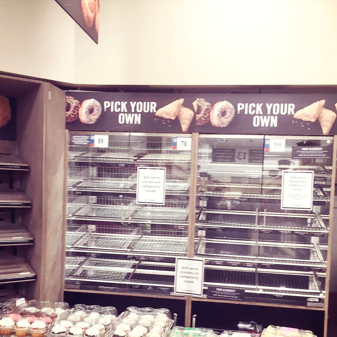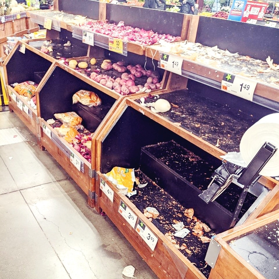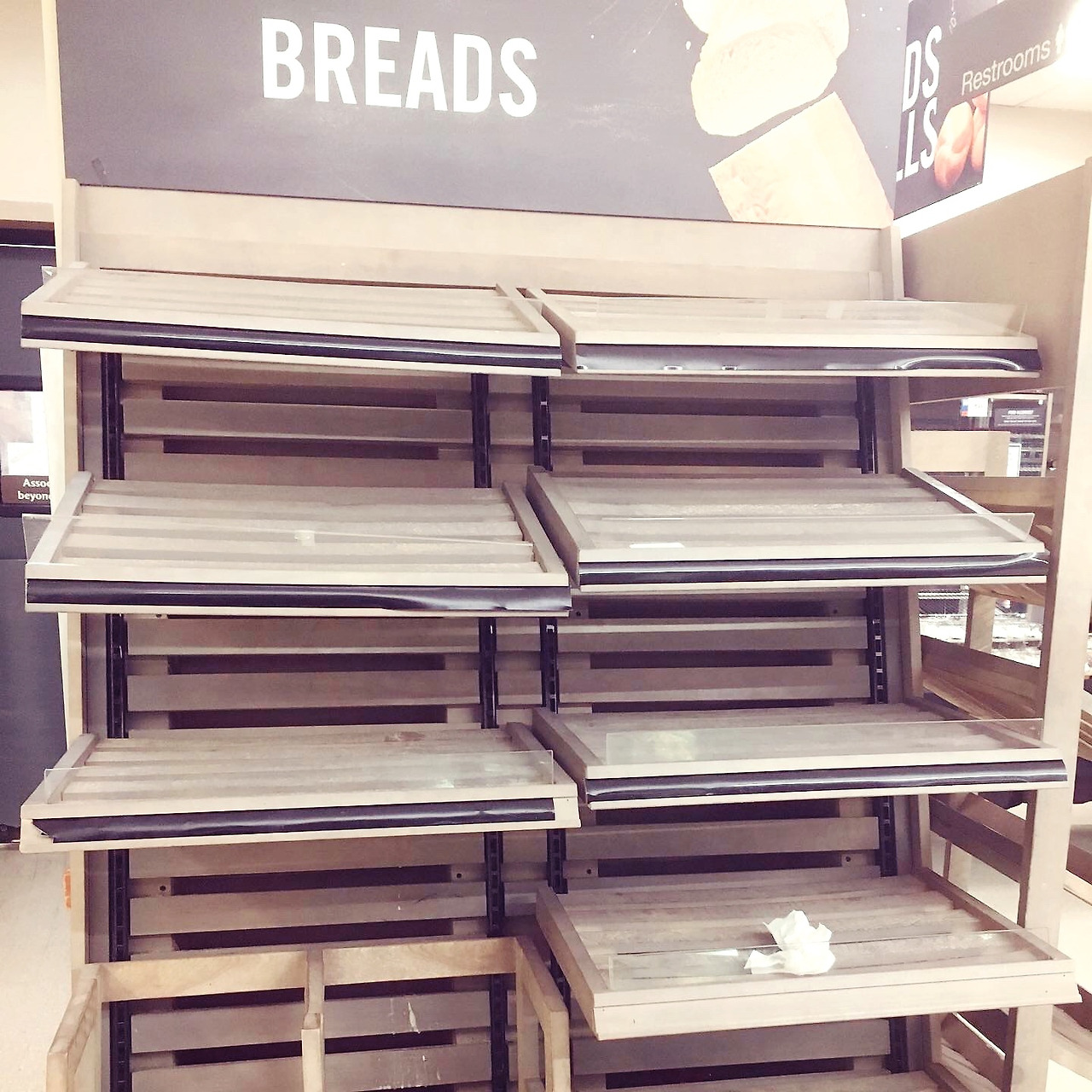 집 앞 마트의 빵 코너에 빵이 실종된 모습 (다른 코너들은 사람들이 많아 촬영 못했어요)