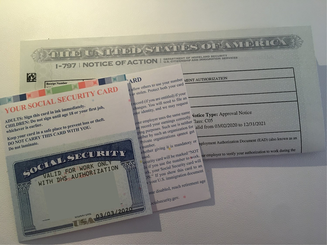 신청하는 것부터 골치 아프고 반려되는 경우도 더러 있으며 평균적으로 4~5개월 정도 (7개월 걸린 사람도 있다네요..) 기다려야 하는 시간 등의 힘든 여정을 담은 인터넷 후기들을 보니 여유를 갖고 일단 몇 달은 적응하면서 페이퍼에 집중하자는 생각을 했습니다. 그런데, 1월 중순에 발송하고 2월 초에 접수된 서류가 3월 초에 승인이 나서 한 달만에 허가증과 SSN, EAD카드까지 모두 받았어요! 미국의 행정 시스템 엄청 더디다더니.. 이것은 무슨 일? 조금만 늦었어도 코로나 팬더믹과 겹쳐 공공기관 다 쉬고 엄청 늦게 받았을 텐데.. 올해 나에게 좋은 일이 많이 생기는 것 같네요. 물론 일을 구하는 것은 별개의 문제지만...
