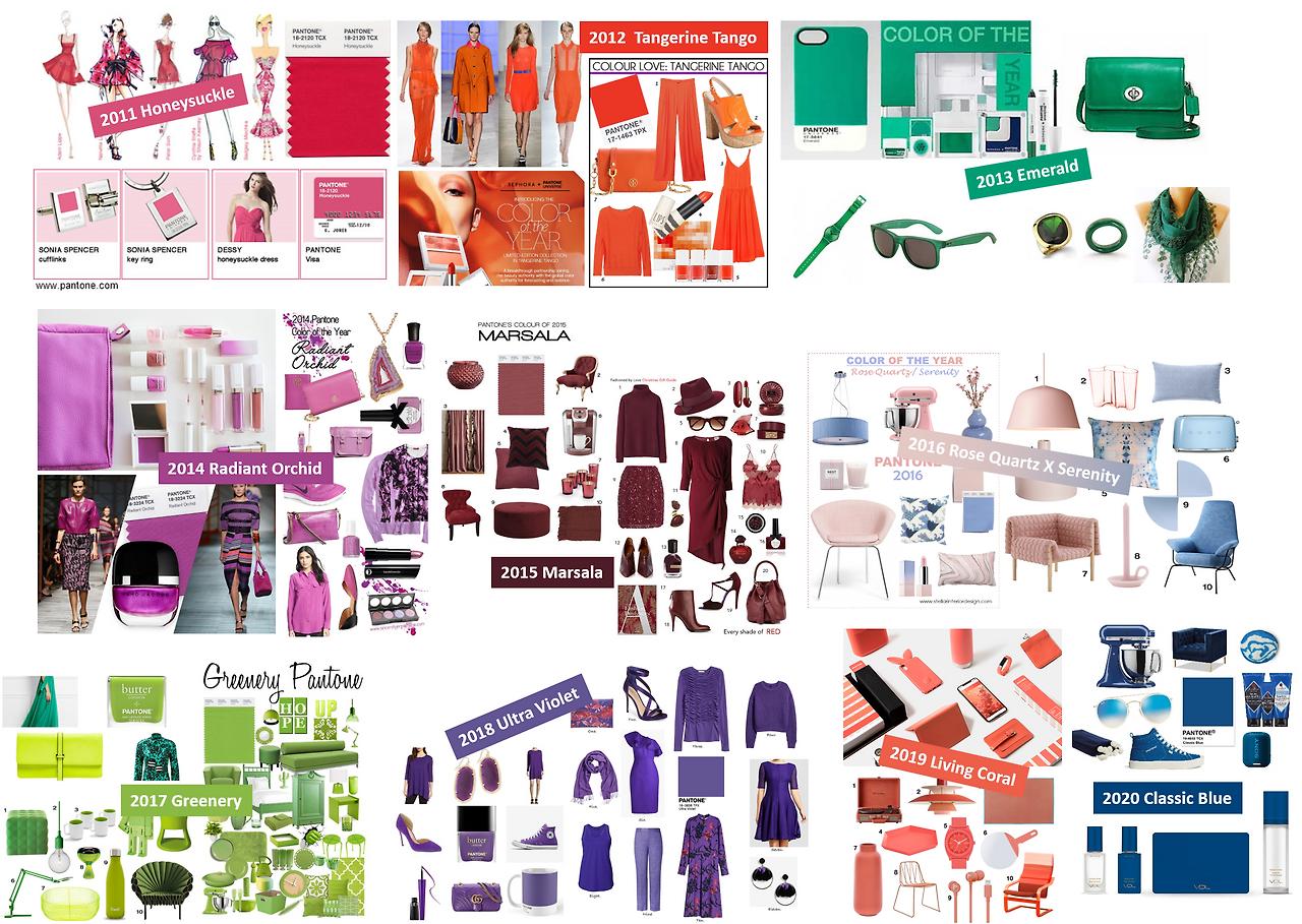 매 10년 사이클로 시작하는 첫 해(2000, 2010, 2020년)는 파란 계열의 색이 '올해의 컬러'로 선정이 되었다. 밀레니얼 시대의 시작은 희망찬 느낌의 Cerulean, 2010년은 신비로운 느낌이 가미된 치유와 영감의 색상 Turquoise, 그리고 올해에 선정된 Classic Blue. 2020년의 클래식 블루는 평온하고 차분한 느낌으로 선정되었지만, 코로나로 힘든 시기를 보내는만큼 왠지 차갑고 음울하게 느껴지기도 한다. 실제로 코로나로 인한 우울증을 호소하는 사람들이 '코로나 블루'라는 단어를 사용하고 있기도 한 것을 보면 의도치 않게 '올해의 컬러'와 올해의 분위기가 잘 들어맞는 느낌을 받는다. 2009년, 금융위기로 인한 경제적 불확실성에서 긍정의 에너지를 주고자 밝은 느낌의 Mimosa가 선택된 것처럼 내년의 2021년 색상은 희망과 용기를 주는 따뜻하고 밝은 색상이 선정되지 않을까 조심스레 예측을 해본다.