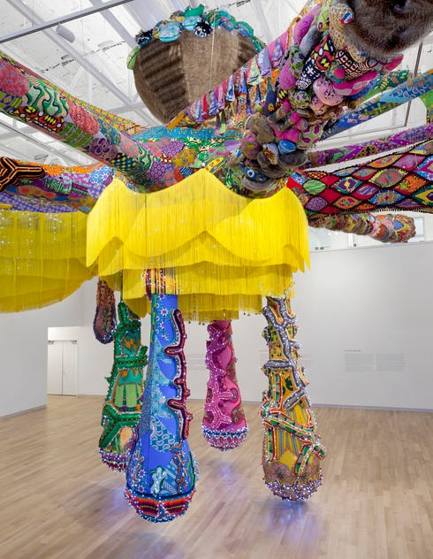 왼쪽 작품은 포르투갈의 유명 예술가 Joana Vasconcelos의 작품으로 미국에서 개최하는 첫 개인전이며, 1781년 매사추세츠 주에서 노예 제도를 불법화하는데 도움을 준 여성인 Elizabeth "Mumbet" Freeman을 기리는 것으로 Vlakyrie Mumbet이라는 이름의 작품. 참고로 Valkyrie는 북유럽의 전쟁의 여신.